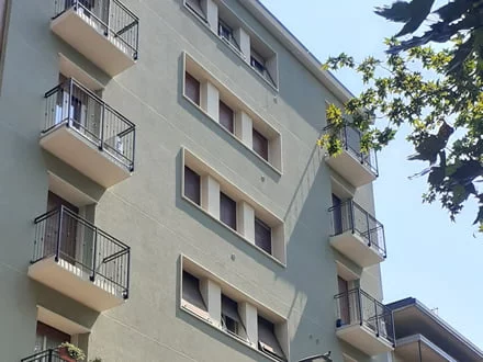 Riqualificazione energetica Superbonus 110%: isolamento delle facciate con cappotto, rifacimento dei balconi, rifacimento del manto di copertura con pannello sandwich isolante, innalzamento dei parapetti in muratura e sostituzione dei parapetti metallici, sostituzione centrale termica condominiale.