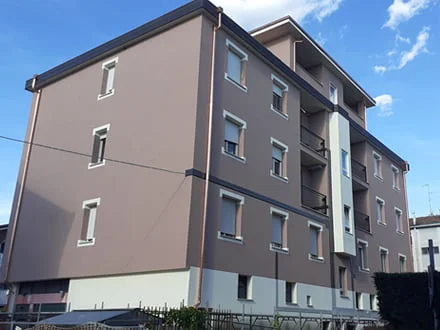 Riqualificazione energetica Superbonus 110%: isolamento delle facciate con cappotto, rifacimento dei balconi, sostituzione dei parapetti metallici.